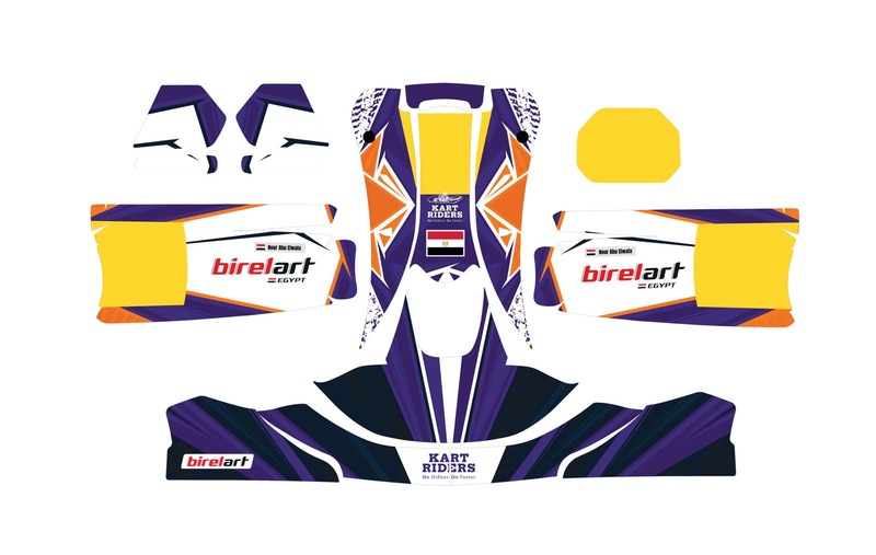 Official Kart Riders custom kart graphics kit in the Purple & Orange design. Made from high-grade adhesive vinyl for exceptional durability and long-lasting vibrant colors. Features bold purple and orange accents with Kart Riders branding for a striking racing appearance. Includes complete decal set for front, side, and rear panels, precisely cut to fit competition karts.